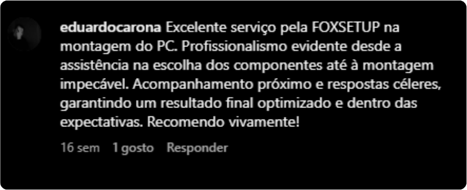 Na FOXsetup, somos técnicos especializados em montagem de PC’s personalizados, com experiência desde 2007 e vendas no setor desde 2011. Além da nossa formação técnica, passámos anos com jogadores semi-profissionais de eSports, o que nos permite compreender as reais necessidades de desempenho de cada utilizador.